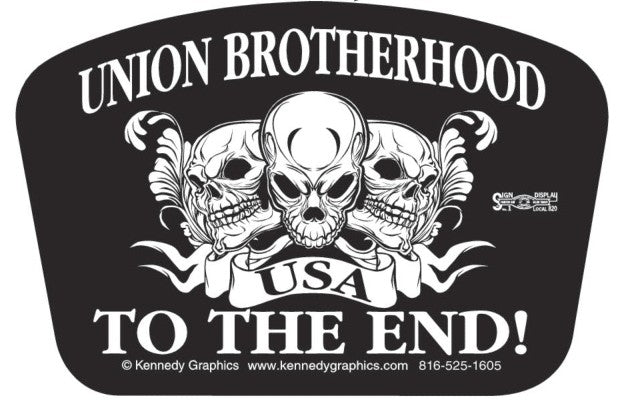 Here is a nice 3" X 2" hard hat sticker called United Brotherhood.