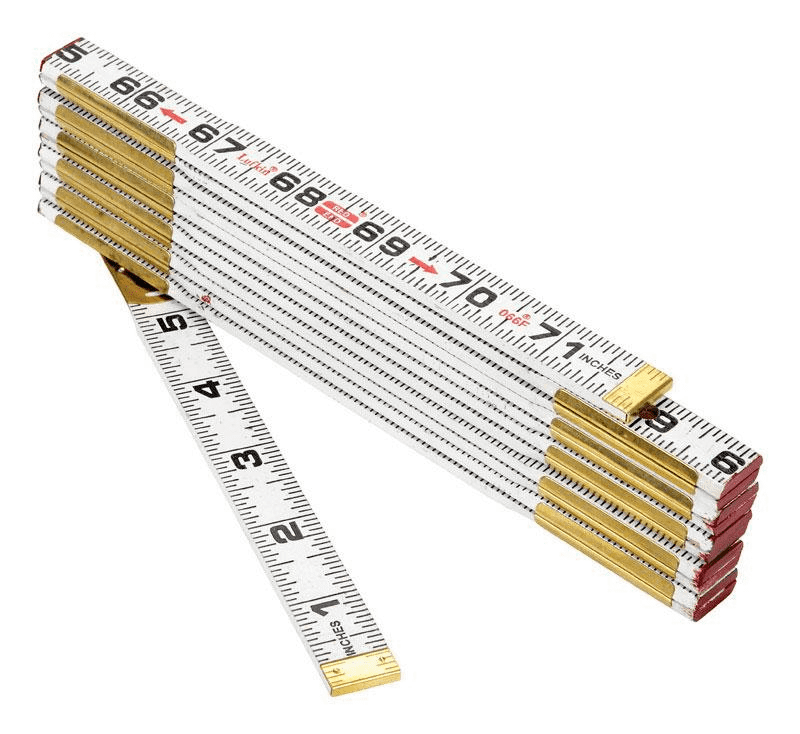 - Has inside markings; numbering begins on inside of rule; measurement.