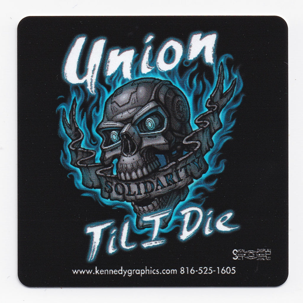 'Union Til I Die' Skull w/Blue Flames Hard Hat Sticker.
